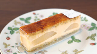 「パティスリーサダハルアオキ」パリで注目される日本人パティシエ青木定治さんの洋菓子店です。「モンブラン・ワグリ・ホウジチャ」は秋限定のケーキ。兵庫県丹波産の栗に、ほうじ茶のクレームシャンティが使われています。
