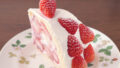 과수원 주코트입니다. 얇게 썬 키위와 딸기가 돔형 케이크를 장식하고 있다.
